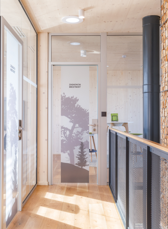 Drevo predstavuje integrálnu súčasť firemnej identity. Preto návrh sídla tejto firmy pracuje s drevom v rôznych podobách v interiéri aj exteriéri. Hlavným cieľom bolo vytvoriť zdravé a atraktívne pracovné prostredie pre zamestnancov.