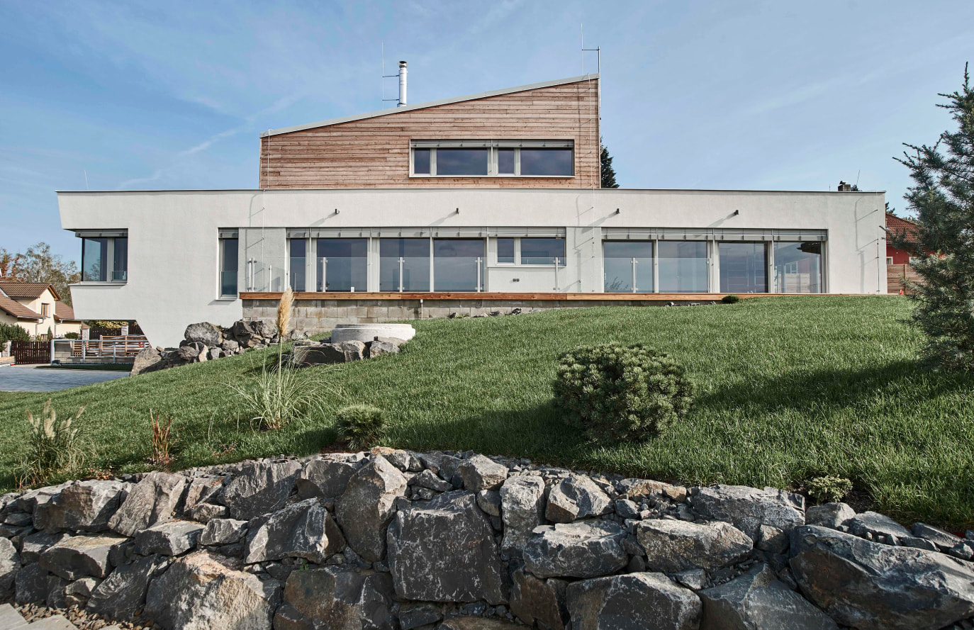 Od počátku jsme k návrhu ateliéru přistupovali velice citlivě s důrazem na design a jednotlivé detaily. Tomu odpovídá jak řešení hmoty objektu, dřevěných fasád, oken s bezrámovým zasklením, tak realizace celého interiéru na míru. Většina interiérových prvků je vyrobena ze stejného materiálu, ze kterého je postavena nosná konstrukce domu – smrkové masivní dřevěné panely. Nosné stěny se tak krásně prolínají s vestavěnými prvky nábytku a tvoří jeden celek.