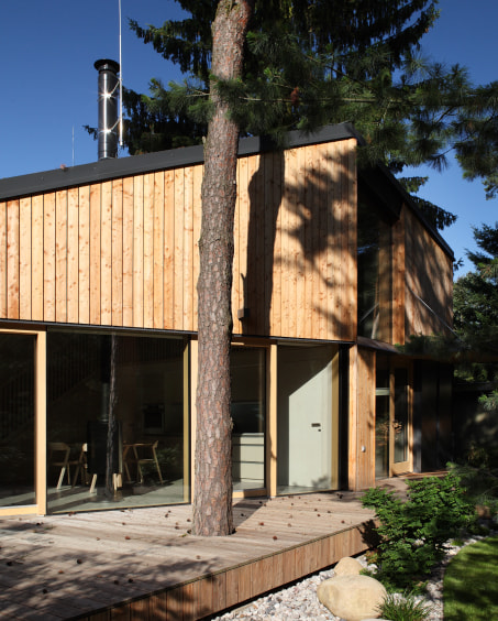 Vycházeli jsme z daností krásné parcely se vzrostlými borovicemi, které utvářejí lesní charakter celého pozemku. Ve shodě s investorem jsme se snažili o maximální zachování stávajících stromů. Ateliér jsme nenásilně umístili na pozemek - dokonce tak dokonale, že jsme jednu ze vzrostlých borovic nechali záměrně prorůstat terasou.