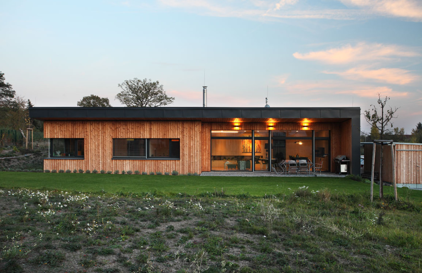 Přízemní rodinný dům jsme postavili na rovinatém pozemku v nově vznikající části středočeské obce.
