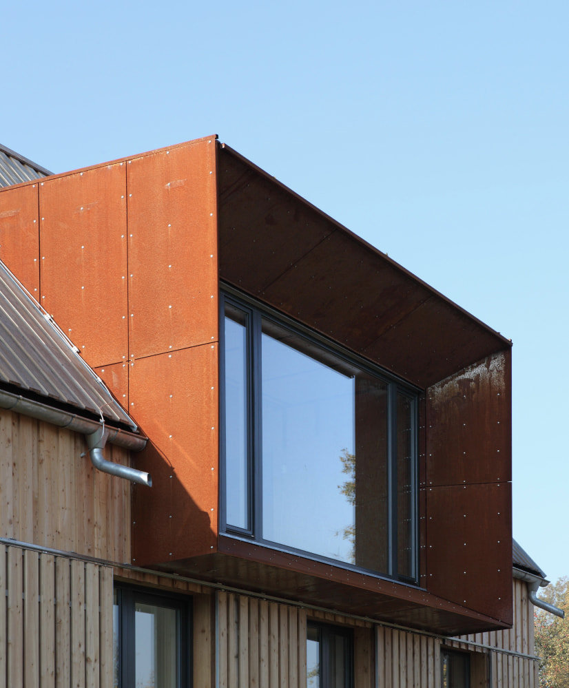 Pozemek lemují dvě vzrostlé lípy a směrem k západu přechází v otevřené louky. Právě výhledy na stavby v okolí a také na hřebeny Krkonoš, byly klíčové při tvorbě návrhu a usazování domu na pozemek.