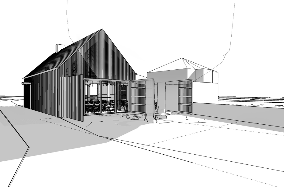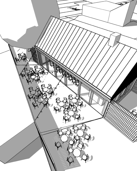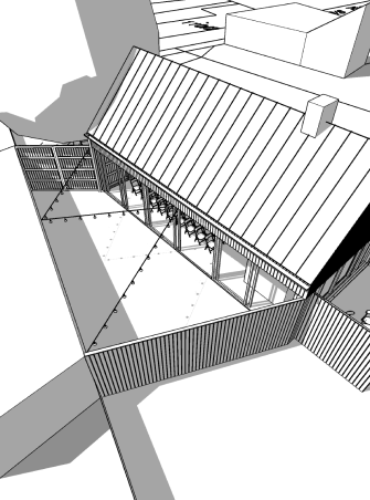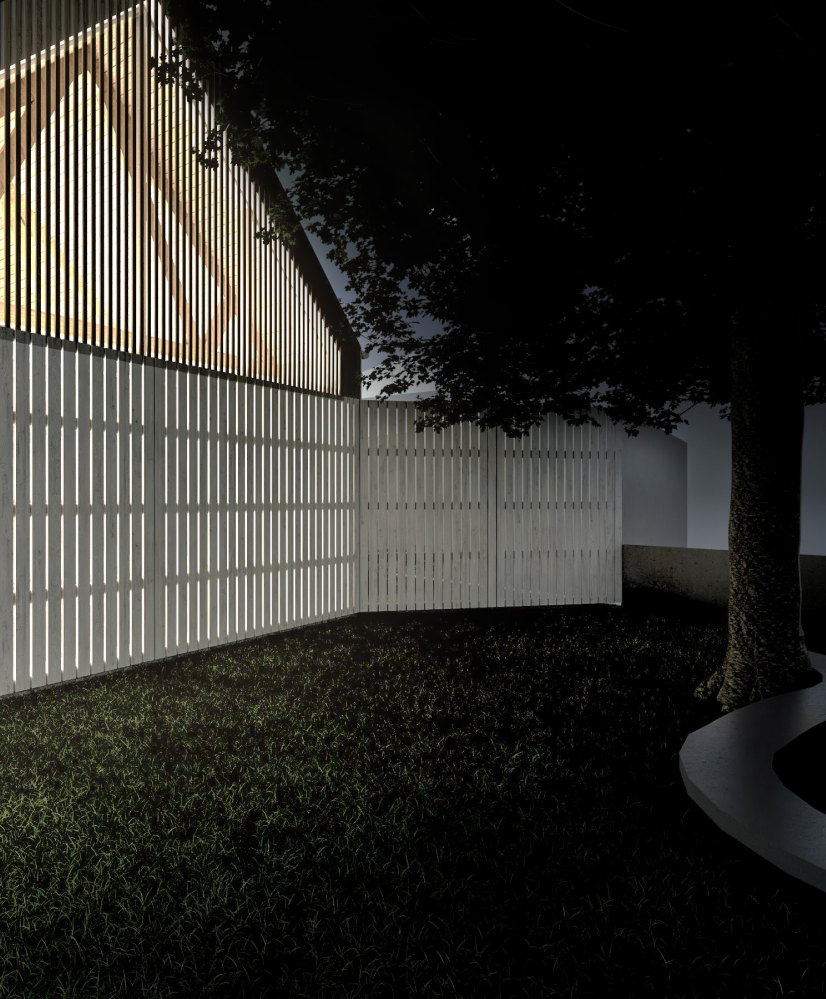 Návrh rozděluje pozemek na zóny, které mohou sloužit různým účelům. Kolem celého objektu prochází dřevěná stěna, která v sobě skrývá otevírací vrata. Dům s nádvořím vytváří variabilní prostor, který se dělí na další menší části, které mohou být využívány zvlášť, či je možné je všechny plně propojit i s okolním prostředím. Nádvoří rozšiřuje objekt o další soukromý prostor, který se nabízí využít jako venkovní terasa se sezením, plocha na cvičení apod. Atrium je možné různými způsoby zastřešit, ať už se bude jednat o krytí tesařskými prvky či jen jednoduše rozkládacími slunečníky.