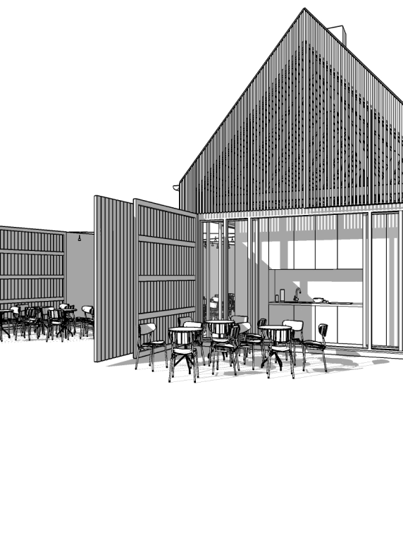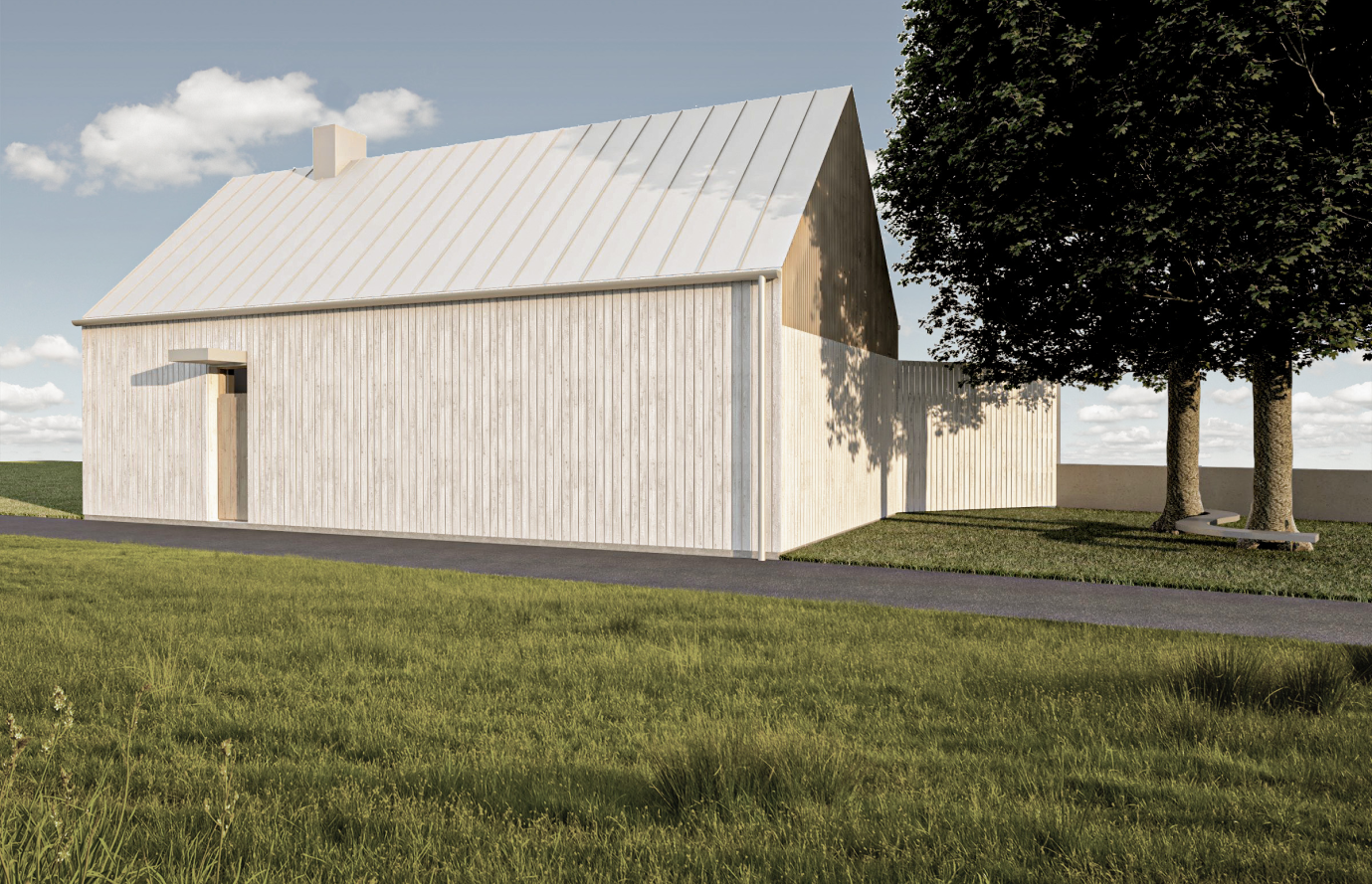 Charakter návrhu spolkového domu pro městskou část Praha 22 vychází z podoby vesnických domů s nádvořím a stěnami oddělujícími soukromý prostor od ulice.