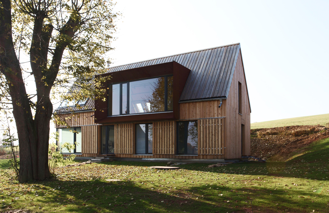 "Patro jsme vymýšleli "naruby", než jak je zvykem. Nejdříve vznikaly potřebné prostory pro ložnice a pak jsme střechu "okrajovali" tak, aby hmota domu byla co nejmenší. Naším cílem bylo navrhnout stavbu, která se pokorně zapojí do zeleného svahu nad vodní hladinou, kde stojí převážně menší staré chatky."