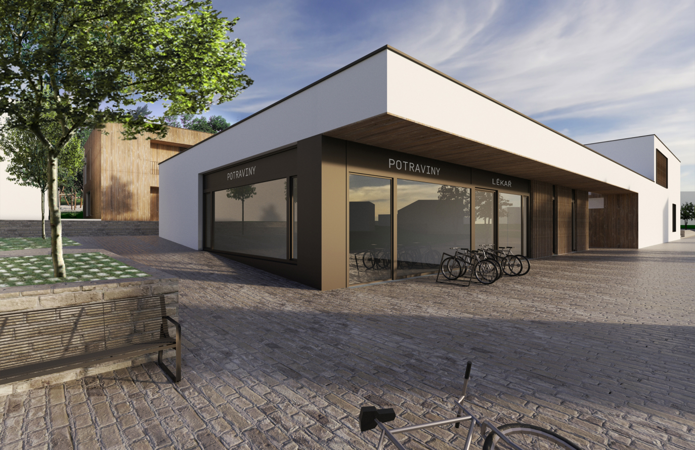 Jednopodlažní rodinný dům díky tvaru do „U“ zajišťuje svým obyvatelům soukromí v atriové části a dotváří uliční část.